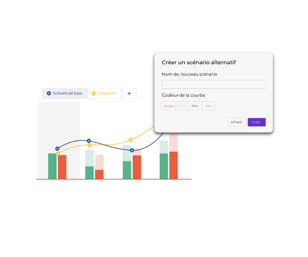 Simuler des scénarios et évaluer leur impact (retard client, nouvelles charges, investissement…)